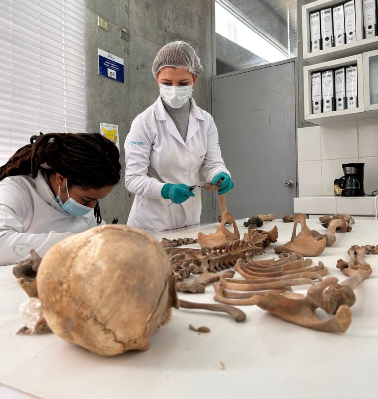 Sobre a troca de conhecimentos e experiências proporcionada pelo acordo, Priscila conta que contribui para ampliar o repertório de análises, inclusive as feitas no Labfor. “Quanto mais análises fazemos, maior nosso repertório para verificar e identificar pessoas, desaparecidos, casos de violência, desaparecimentos forçados. Conseguimos identificar mais facilmente eventuais marcas de violências ósseas, mesmo quando não há materialidade suficiente, pois um dos grandes desafios é encontrar materialidade em casos de morte violenta. A antropologia forense auxilia nesse sentido, ainda mais nessas análises forenses de identificação de perfil biológico de indivíduos, isso contribui muito”, relata. “Essa troca, essa experiência, quando dá certo, pra nós é super importante e podemos reproduzir as análises aqui, fazer uma troca com o nosso Museu de Arqueologia, por exemplo”, acrescenta Lini.
