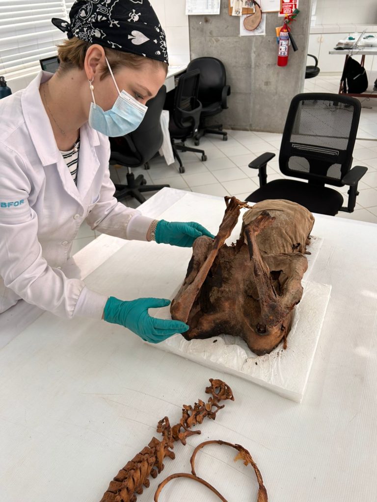Priscila é responsável na UFMS pelo Laboratório de Bioantropologia e Antropologia Forense (Labfor) da Fach, o único no Brasil nessas áreas. O grupo fez análise de 38 indivíduos, 34 esqueletizados e quatro ainda em fardo funerário. “Conseguimos traçar o perfil da população, agora estamos fazendo o relatório final. No que se refere aos remanescentes humanos, o Complexo apresenta uma riqueza gigantesca, eles estão muito privilegiados em relação a nós, devido às próprias camadas e os fardos, os tecidos funerários, alcalinidade do solo arenoso e sua salinização, por ser um local onde o deserto encontra o mar, diferentemente do nosso solo ácido, vermelho. Isso tem papel relevante na degradação do material ósseo”, detalha a professora.